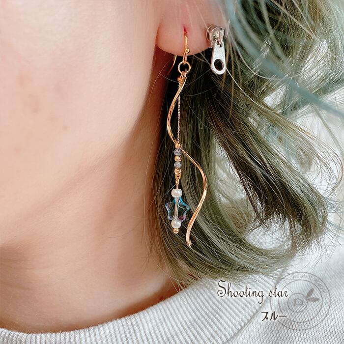 流れ星のデザインのシンプルピアスorイヤリングです♪