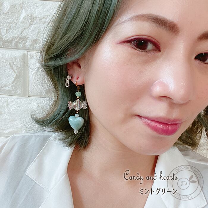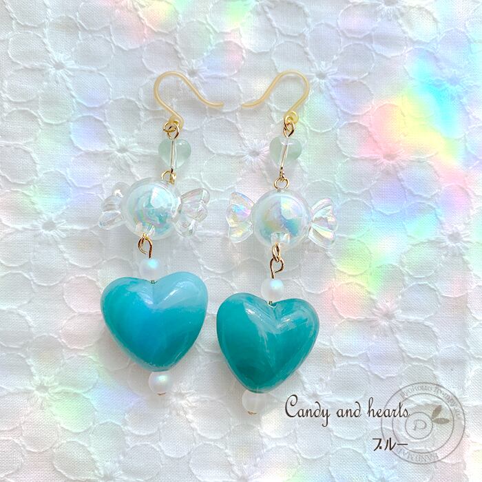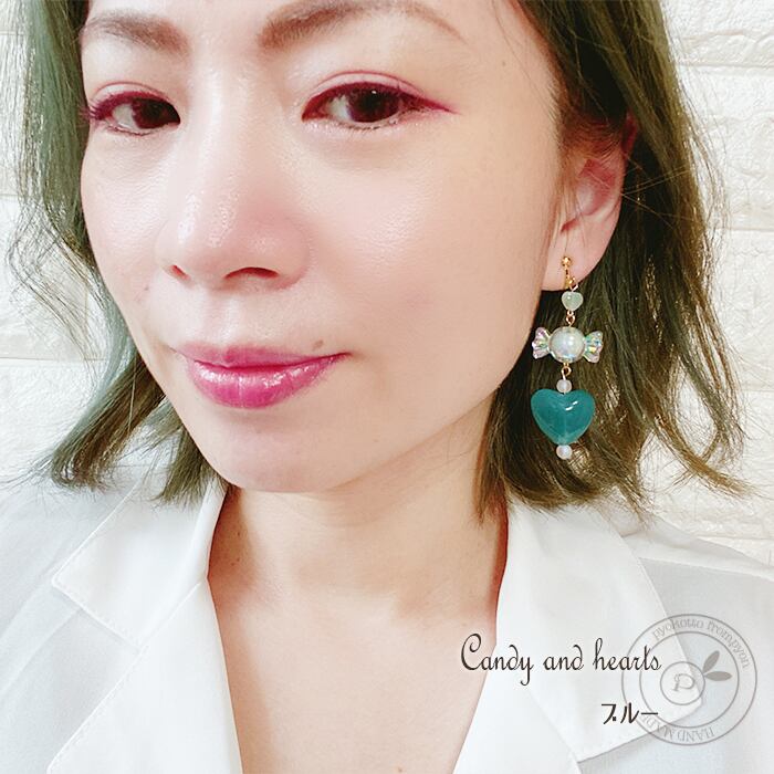 キャンディとハートを組み合わせた大ぶりピアスorイヤリングです♪