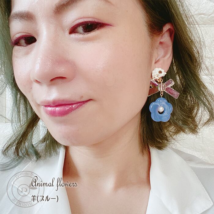 可愛い動物とお花を組み合わせた大ぶりピアスorイヤリングです♪