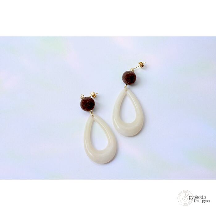 大きな雫とベロア生地のポンポンが付いたかわいいピアスです☆