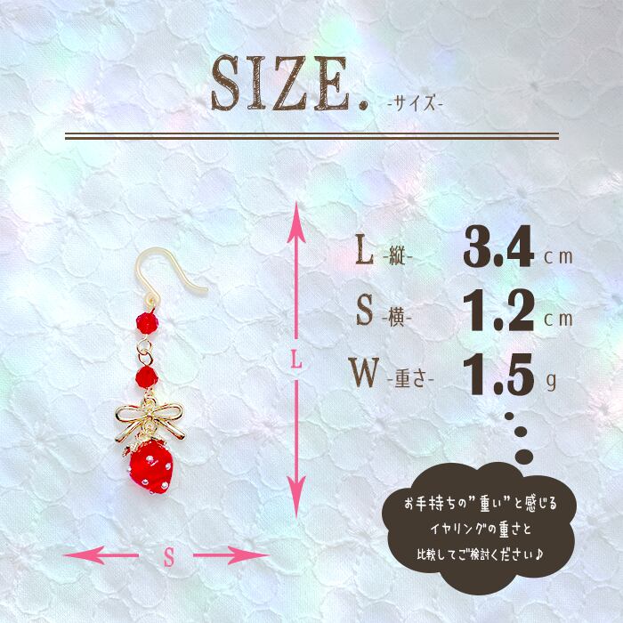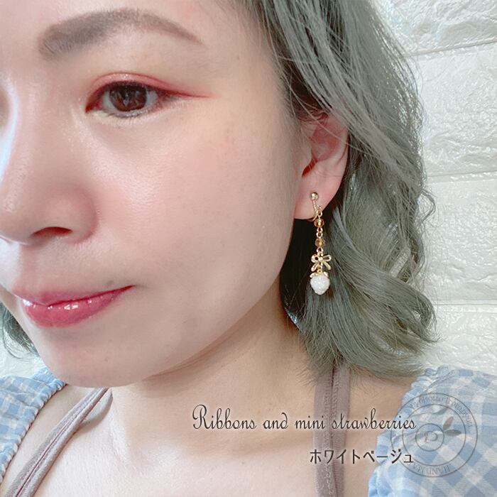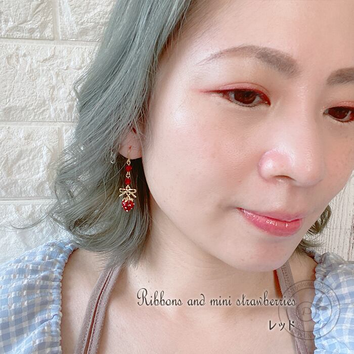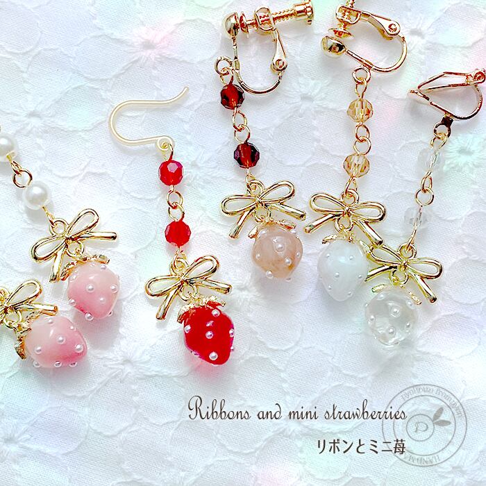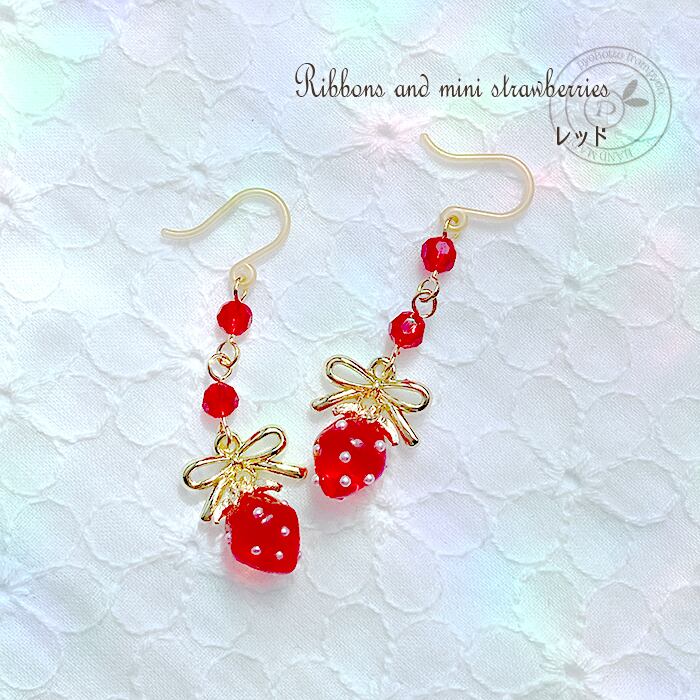 小さなイチゴとリボンを組み合わせたとても可愛らしいピアスorイヤリングです。