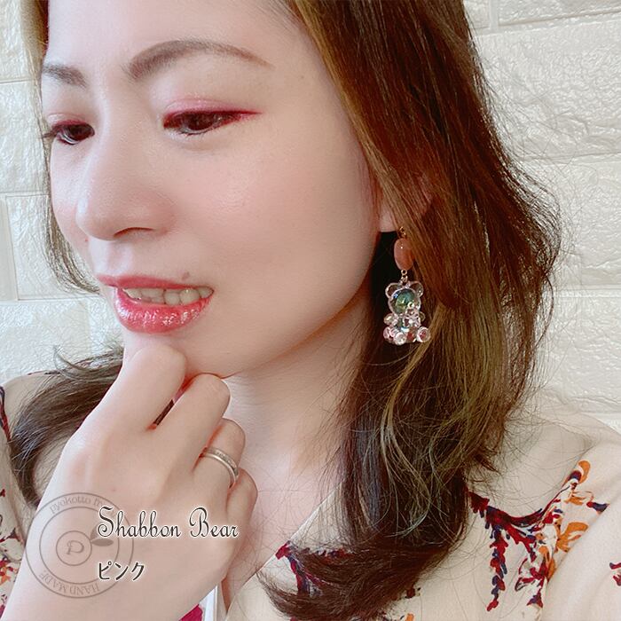 すごく可愛い透明でキラキラなくまさんとハートの大振りなピアスorイヤリングです♪