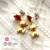 かわいいくまちゃんと赤いハートのピアスになります☆