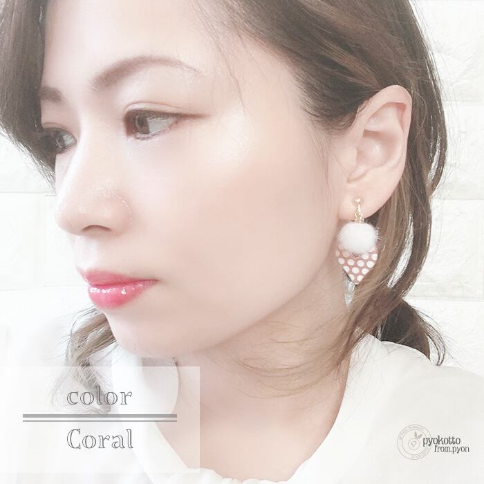 秋色のファーポンポンとカラフルな水玉のプレートを耳の後ろからゆらゆらさせました☆