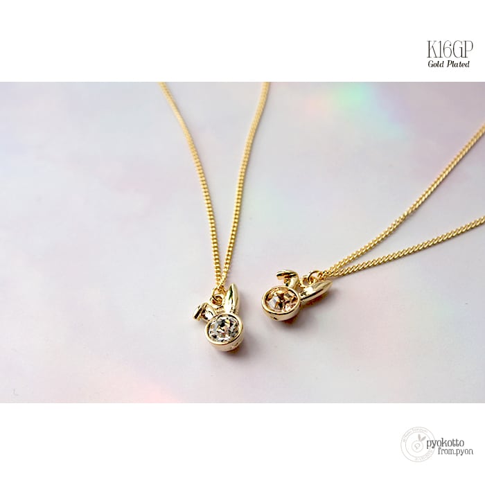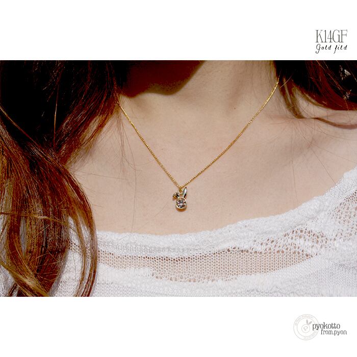 キラキラのラインストーンにうさぎの耳が生えたかわいいネックレスです♪