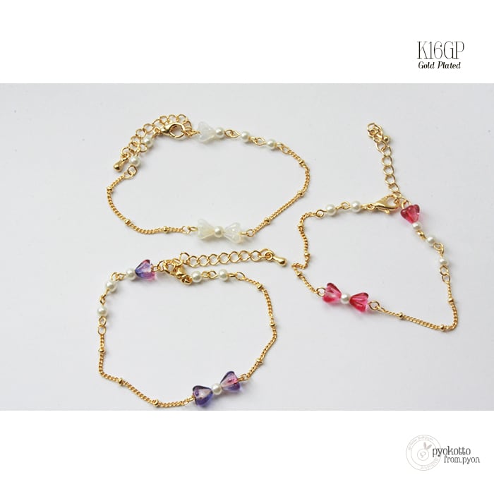 ガラスのビーズを組み合わせて小さなリボンのブレスレットが出来ました☆