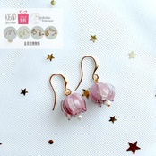 ガラスで出来たスズランのようなお花モチーフの一粒ピアスorイヤリングです☆