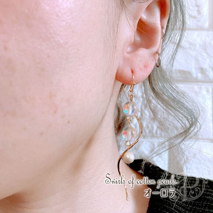 イヤリング 大ぶり 金属アレルギー パール 宇宙 コットンパール かわいい アクセサリー ゴールド ギフト プレゼント 女性 レディース 大きめ おしゃれ ポイント消化