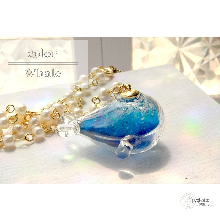 くじらさんの中はブルーと透明のグラデーションの中に、オーロラのホログラムを入れて宇宙をイメージしています☆