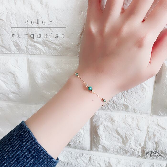 とっても繊細な極細チェーンに、小さなガラスビーズをあしらいました☆
