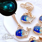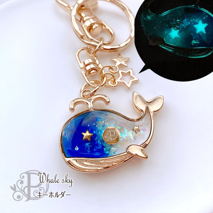 くじらさんの中はブルーと透明のグラデーションの中に、オーロラのホログラムを入れて宇宙をイメージしています☆