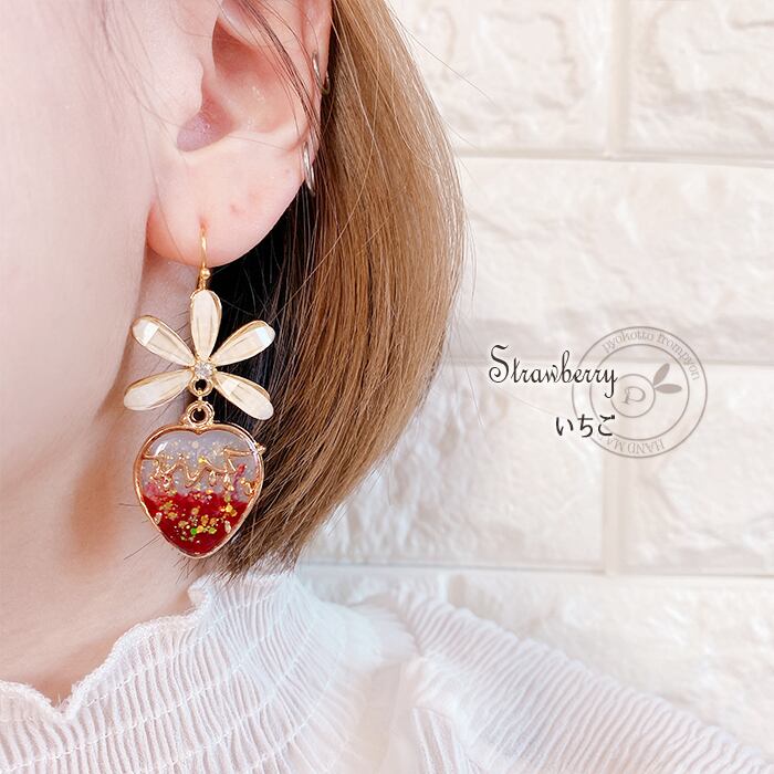 手作り 大人可愛い グッズ ハンドメイドアクセサリー ハンドメイド おしゃれ 3000円 5000円以下 love かわいい ゴールド プチプラ 安い 可愛い 金 個性 個性的 樹脂 人気 派手 送料 送料無料 赤 レッド 苺 イチゴ 花 白 ホワイト いちごみるく イチゴミルク ゆめかわ ゆめかわいい ロリータ ガーリー フルーツ でかい 大ぶり 大き目 大きめ 大きい 大振り