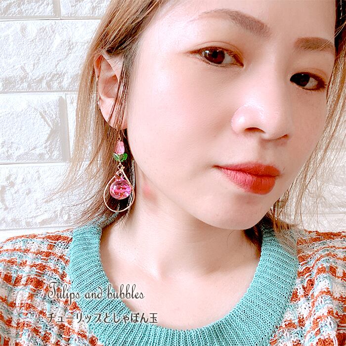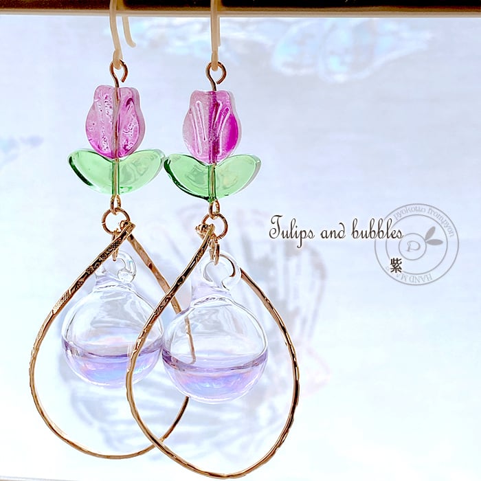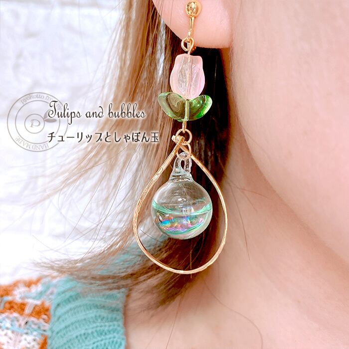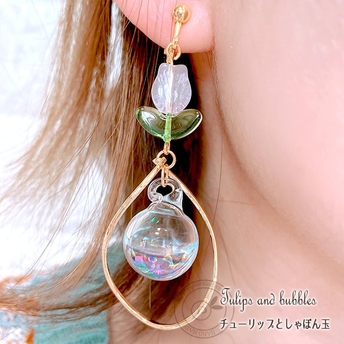 チューリップとしゃぼん玉 ピアスorイヤリング -20230712-1-