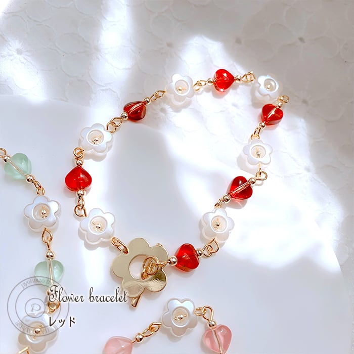花 ハート 大人可愛い 赤 グリーン ピンク シンプル ゴールド ブレスレット レディース 可愛い おしゃれ 個性的 ギフト プレゼント 女性 かわいい 送料無料 ポイント消化