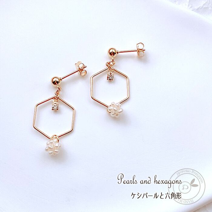 エレガントで上品なケシパールと六角形の組み合わせが美しいアクセサリー。