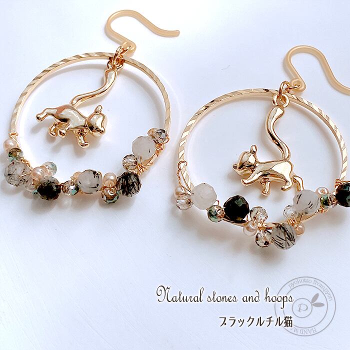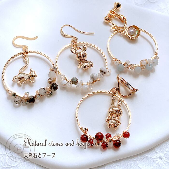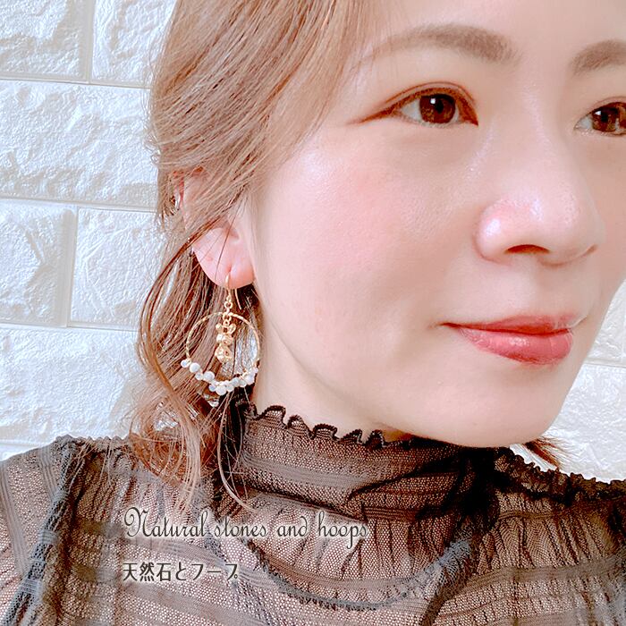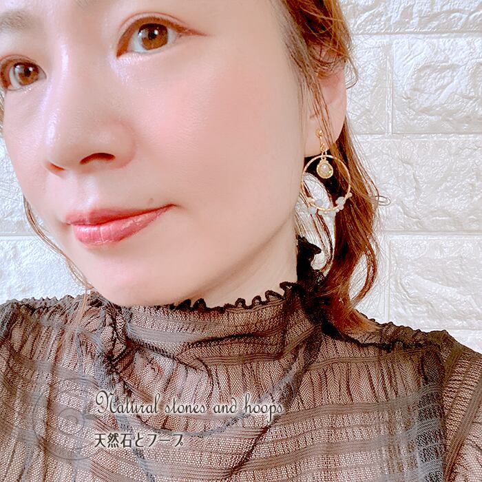自然の輝きと優雅なフープの調和 - 天然石の魅力を耳元に