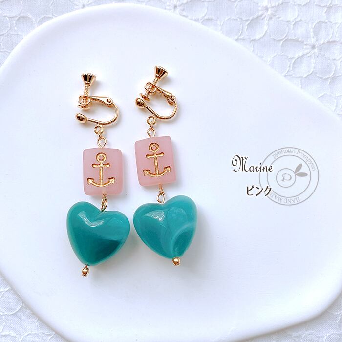 ハートの柔らかい色合いとアンカーのゴールドが美しく調和し、夏らしい爽やかな印象を与えます。