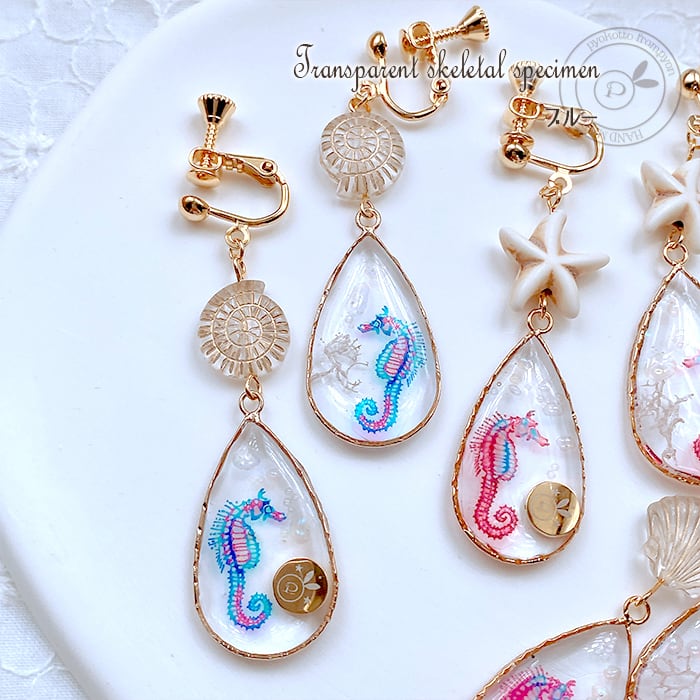 オリジナル ロゴ入り 手作り 大人可愛い グッズ ハンドメイドアクセサリー ハンドメイド おしゃれ 3000円 5000円以下 love かわいい ゴールド プチプラ 安い 可愛い 金 個性 個性的 樹脂 人気 派手 送料 送料無料 透明 クリア ブルー 青 レッド 赤 ピンク 水 気泡 泡 アクア 水槽 たつのおとしご 海 マリン シェル 貝殻 ヒトデ レジン uvレジン